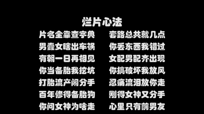 一、入门级烂片,普通的剧情——观众从开头,或者从桥段的开头就能看得出结局的剧情。或者看完也没什么回味的。比如韩庚和黄子韬的不同版本《大话西游》,还有前些年的青春片。基本看了前面十几分钟就能知道整个剧情发展——注意,是整个剧情发展,而不是前头和结尾。